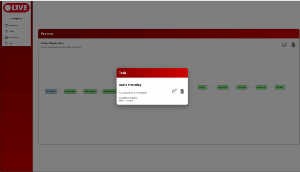As L1VE expanded its team, processes that once existed informally in people’s heads no longer worked. Without a documented overview, team members spent valuable time figuring out who was responsible for what, leading to redundancies and delays.